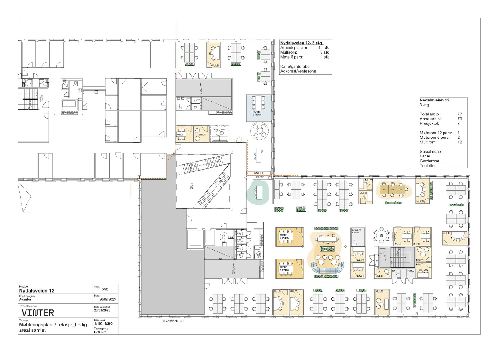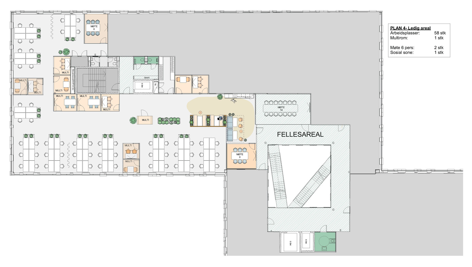 • 3. etasje: To separate arealer på henholdsvis ca 365 kvm BTA og ca 1.259 kvm BTA. Mulighet for å slå dem sammen til totalt 1.624 kvm BTA.